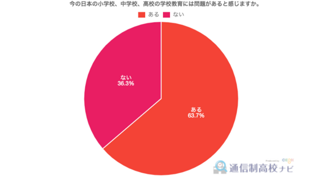 通信制高校の検索サイト「通信制高校ナビ(https://www.tsuushinsei-navi.com/)」を運営する、株式会社クリスク(東京都品川区、代表取締役社長:山下典久)が、全国の15歳以上、69歳以下の300名(10代~60代まで各年代50名ずつ)を対象に、日本の学校教育に関する問題点・改善点について調査を行いました。