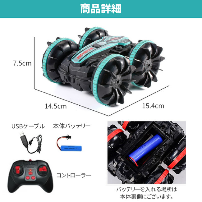 水陸両用 ラジコンカー 360°旋回 転倒しない ラジコン コントローラー付き 室内 屋外 遊び 水上 陸上 四輪駆動 両面走行 オフロード ラジコン こども 誕生日 プレゼント クリスマスプレゼント【gi-TOYS-001】