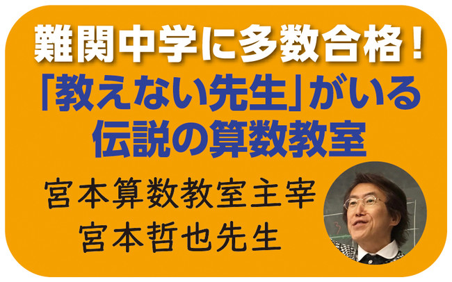卒業生の多くが難関中学合格の実績をもつ人気算数教室。教室最大の特長は、「教えない」こと。「解き方に困っても絶対に教えない!自分で考え抜くこと、それが賢くなる秘訣」をモットーに、「面白い問題だけが子どもを夢中にさせる」と、ひたすらパズルを解き続ける、宮本メソッドを打ち立てた。