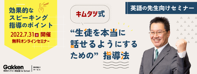 株式会社 学研ホールディングス(東京・品川/代表取締役社長:宮原博昭)のグループ会社、株式会社 学研プラス(東京・品川/代表取締役社長兼COO:南條達也)は、2022年7月31日(日)に中学校・高等学校の教職員の方を対象に、「英語スピーキング指導」をテーマとした無料オンラインセミナーを開催いたします。