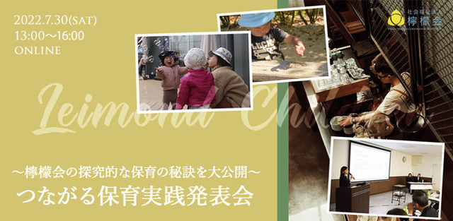 レイモンド保育園などを運営する社会福祉法人 檸檬会(れもんかい/法人本部:和歌山県紀の川市 理事長:前田 効多郎)は、2022年7月30日(土)に無料オンラインイベント「檸檬会の探究的な保育の秘訣を大公開 ~つながる保育実践発表会~」を開催します。さらに、保育士のキャリアアップや就職活動をテーマにした懇談会も行います。