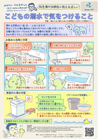 「溺水」は、川や海等の水場で発生するものと思われていますが、こどもに限っては、入浴中等の日常生活の中でも容易に事故が発生します。身体が小さいこどもは、浴室で転倒したり、浴槽に転落したりしやすく、水深5cmでも溺れて呼吸ができなくなってしまう可能性があり、また、身体が冷水に浸されることによる脈拍の低下で失神し、溺れるケースも見受けられます。それらを防止するためには、家庭内ににおいて、溺水事故を起こさせない環境づくりが大切です。救急集中治療医の見地から、こどもの溺水を防ぐために気を付けるべきポイントを解説します。