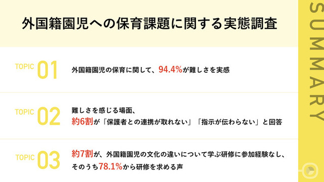 外国籍園児の保育に関して、94.4%の保育士が「難しさ」を実感