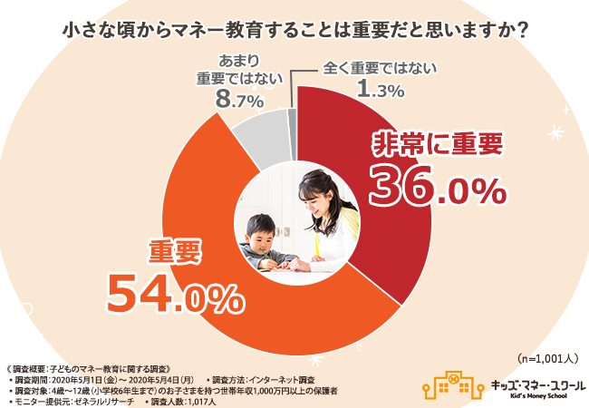 こうした状況を受けて、保護者の9割が「子どもの頃からのマネー教育が重要」と回答するなど、子どもに対する金融教育のニーズの高さが伺えます。(当社調べ)