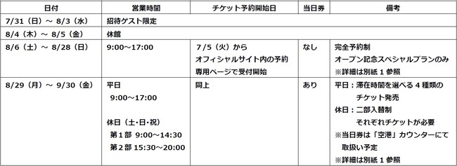 上記期間は完全予約制の「オープン記念スペシャルプラン」料金を適用。当日券の取り扱いはありません。
