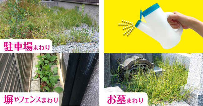 付属の専用ジョウロを繰り返し使えるため、一般的な除草剤の使い捨てボトルに比べてプラスチックごみの量が削減できます。