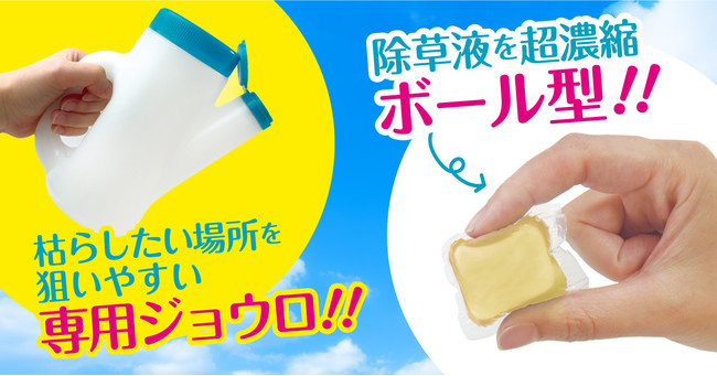本商品は濃縮タイプの除草液を水溶性の特殊フィルムで包んだ、全く新しいボール型の除草剤です。