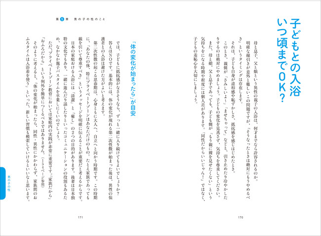 さらに、おちんちんを正しく知り、扱うことが将来の性教育やジェンダー教育にもつながるとして、子供のへの声かけ例やセルフケアの教え方なども掲載。