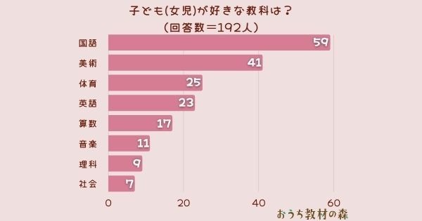 「子ども(女児)が好きな教科は?」とアンケート調査した結果、1位は『国語』でした。