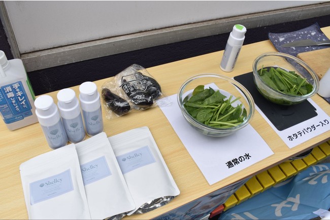 毎年約20万トン廃棄されるホタテの貝殻は土壌汚染などを引き起こす一方、焼成させることで環境に優しい洗浄剤として活用できます。今回の啓発活動では、「使えば使うほど環境改善につながる」洗浄剤を使用して野菜洗いを体験したり、ホタテ貝由来の洗浄剤(Shellcy シェルシー)を配布し、ご家庭から環境改善の取り組みを行う契機をご提供しました。この活動により、日常の生活の中で気軽にできる環境改善の取り組みを多くの方々に知っていただき、環境保全に対する意識の向上につながればと考えております。