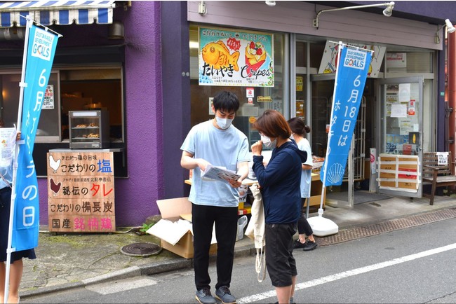 本イベントでは、ホタテ貝由来の洗浄剤(Shellcy シェルシー)とチラシを配り、日常からホタテパウダーを使用することが環境改善に繋がることをスーパーマーケット利用者に伝えました。日々、食材の買い出しや炊事をする層に伝えることで、より効果的にホタテパウダーを通したSDGsの取組が普及できました。