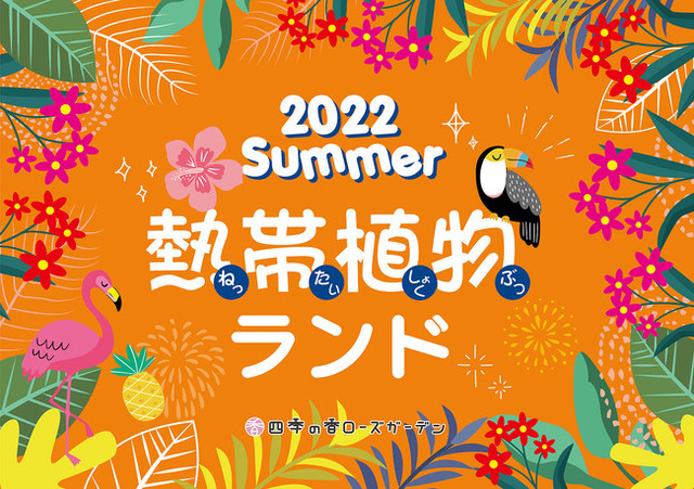 サマーイベントでは、親子で熱帯植物の不思議について楽しみながら学べる「熱帯植物ランド~植物さがしゲーム~」や、バラの香りのローズソフトクリームを使用した「ガーデンパフェ」を期間限定で販売する「四季の香 サマーマーケット&カフェ」、プロのローズガーデナーによる「バラの育て方講座」など多彩なイベントを開催します。