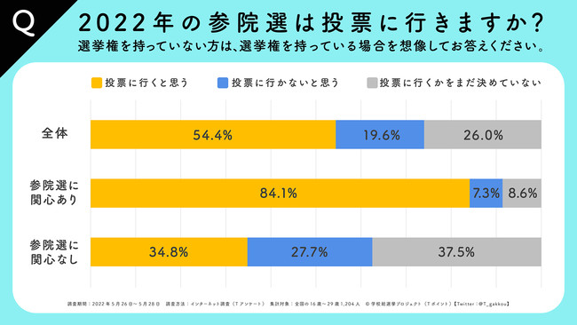 ■2022参院選に関心がない若者は6割。一方で関心がなくても3割は「投票に行く」と回答