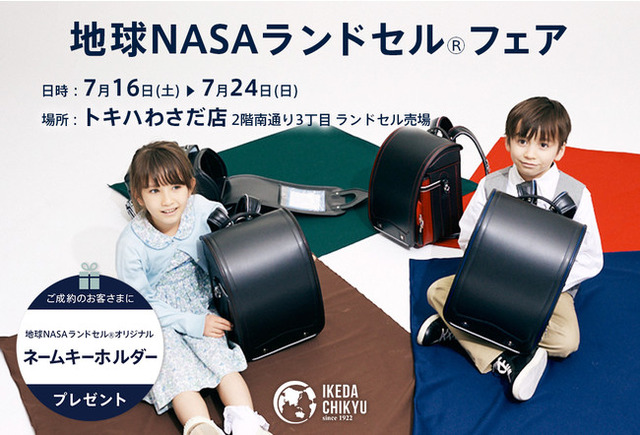 ランドセルの企画・販売を行う池田地球株式会社(本店:東京都港区:代表取締役 村尾光一)は、2022年7月16日(土)~7月24日(日)の期間限定で、大分の「トキハわさだ店」2階南通り3丁目ランドセル売場にて「地球NASAランドセル(R)フェア」を開催いたします。