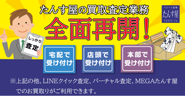 リユース着物の販売・買取の「たんす屋」は、倉庫移転のため、買取り査定業務の一部を中止していましたが、倉庫移転が完了したことから、買取り査定業務を全面再開いたします。箪笥で眠っている着物・帯がございましたら、たんす屋の買取サービスをご検討ください。