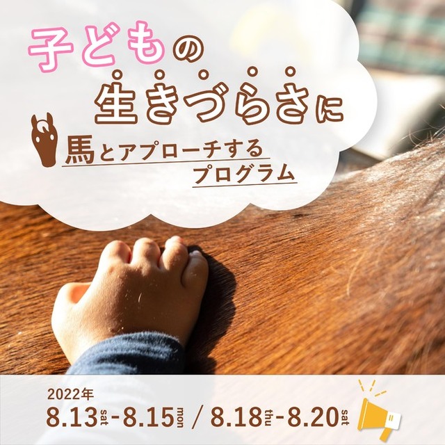2022年8月、沖縄で馬と過ごす「触れ合い型」心のケアプログラムを開催します。小さな子どもは、ことばで気持ちを正確に伝えることができません。例えば、「元気がない、機嫌が悪い」という状態も不安や悲しさからくるサインの可能性もあります。「馬」を通して、親と子どもが同じ視線で世界を見るプロセスには、さまざまな発見や感動があります。そんな発見や感動を一緒に味わい、楽しむことから親子の関係を築いていきましょう。子どもの気持ちをもっと理解し、信頼関係を築きたいと感じるご家族の皆さまにおすすめです。 URL: https://giveness-i.com/articles/hyakuna-program/