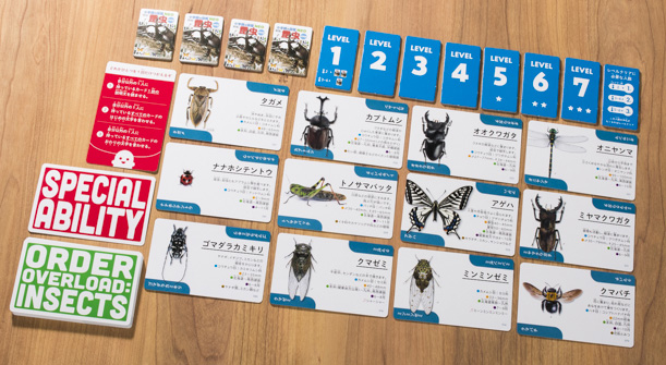 図鑑NEO昆虫より厳選した昆虫72匹をカード化! 虫の写真だけでなく、各種データもバッチリ掲載した、眺めているだけでも楽しいボードゲームです。