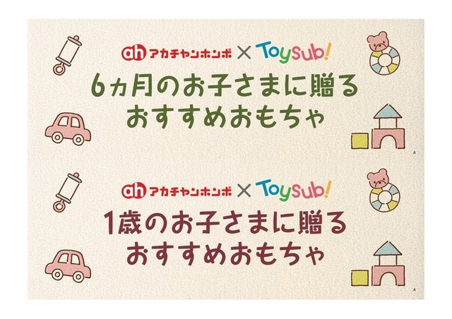 販売されるおもちゃは、トイサブ!ユーザーが実際に遊んだ評価データをもとに選定。これまでに40万回以上のおもちゃ選定・10万回以上のプラン作成をおこなってきた豊富な経験を持つトイサブ!のおもちゃプランナーが、6ヶ月(ハーフバースデー)・1歳のお誕生日におすすめのおもちゃを選定しました。