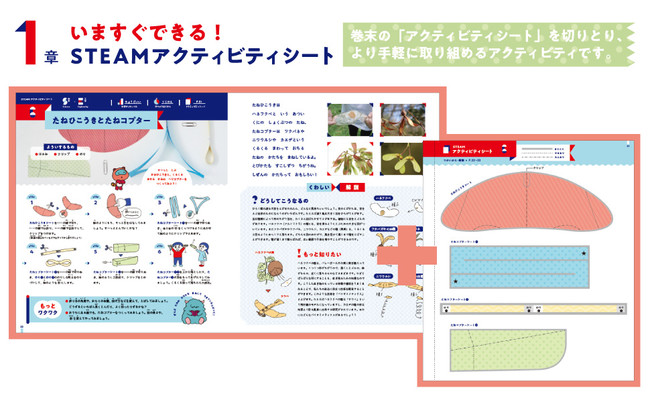 切り取ってすぐできるアクティビティシートと、ワクワクをかきこめるアクティビティノートのふろくつきで、手軽かつ本格的にSTEAMアクティビティを始められます。