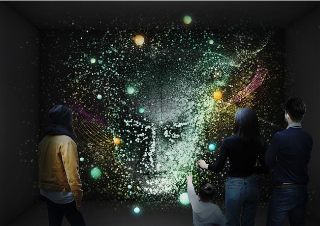 茶室という小宇宙で、居合わせた人たちの「一期一会」から生まれた「間」を可視化する現代ならではの茶室。茶室の中で亭主が茶を点て、客が体と息と心を整え、それが合わさった時に映像に現れるという、以心伝心や一期一会という茶室の精神を感じるアート作品。