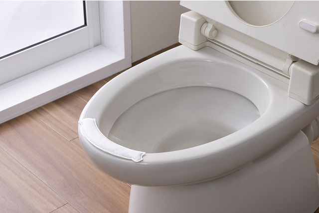リピーターも多い「おしっこ吸う~パット」ですが、「流せるものが欲しい」という声をたくさんいただいており、約3年の企画・開発期間を経て、今回商品化することができました。使い方は、本体裏面の保護紙をはがして便器に貼り、汚れたらトイレに流すだけで付け替えも簡単です。便器と便座のすきまからの飛散を防いで、お掃除もラクになります。