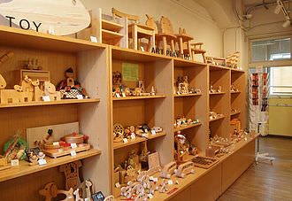 木のおもちゃに実際にふれて遊ぶという体験を重視し、工作にも力を入れ、手仕事を大切にする文化を育みます。また、おもちゃ学芸員が遊びと人との出会いを演出します。