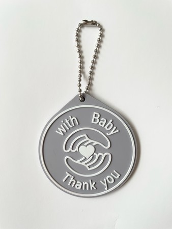 キーホルダーのメッセージ『With Baby Thank you』は、日本人だけでなく多くの方に認知いただけるように英語表記にしました。