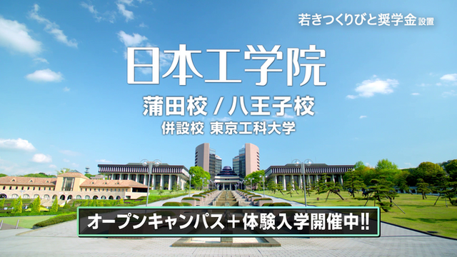 *若きつくりびと(R)…「理想的教育は理想的環境にあり」の理念に基づき、「若者の持つ夢を、技術という生きる力に育み、豊かな未来の創造に寄与する」ことをミッションとする日本工学院ならではの本格的な学習環境で、自由にモノ、コト、場、喜びなどを作る(創る)日本工学院の学生のこと。日本工学院ではすべての学科で「つくる」ことを教育の柱に据え、新しいモノやコトなどをつくり出せる人材「若きつくりびと(R)」育成のため、75年の歴史が培ってきた人材育成のノウハウを生かし、理想の教育環境を実現するためのさまざまな取り組みを行なっている。