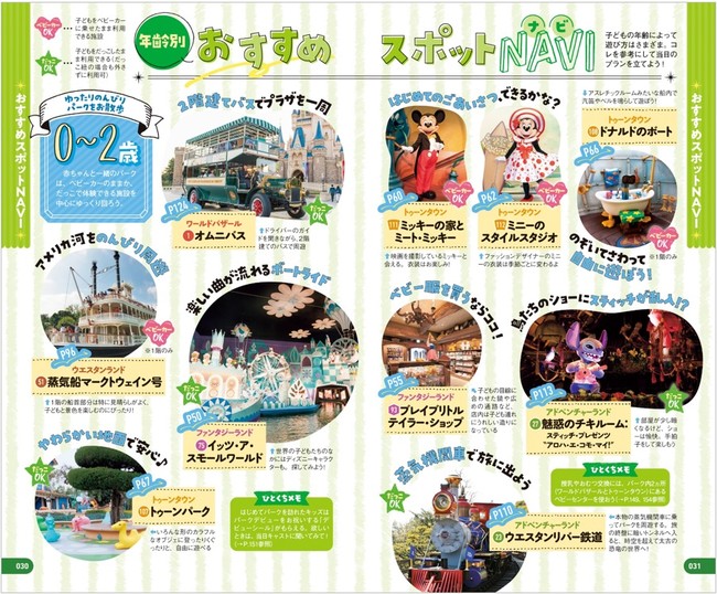 このガイドでは、現役子育て中の編集者たちが各アトラクションをチェックし、利用制限に加え「大音量注意」「暗闇注意」「トイレ大丈夫?」のサブ情報も記載。お子さんがアトラクションデビューする際の参考にもなります。