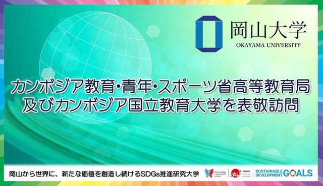 国立大学法人岡山大学(本部:岡山市北区、学長:槇野博史)の鈴木孝義副学長(国際担当)、稲森岳央グローバル人材育成院准教授、仁井勇佑留学コーディネーターらは2022年6月7日、カンボジア教育・青年・スポーツ省高等教育局及びカンボジア国立教育大学を表敬訪問しました。
