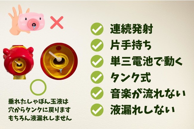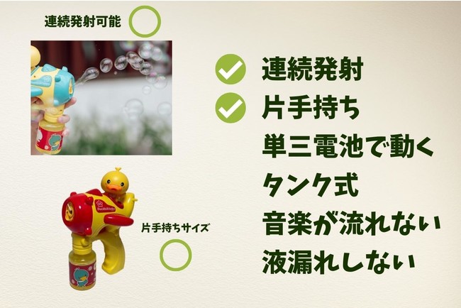 弊社はそんなバブルガンでの悩みを解決したいという思いで、バブルガンの決定版となるような商品をご用意しました。