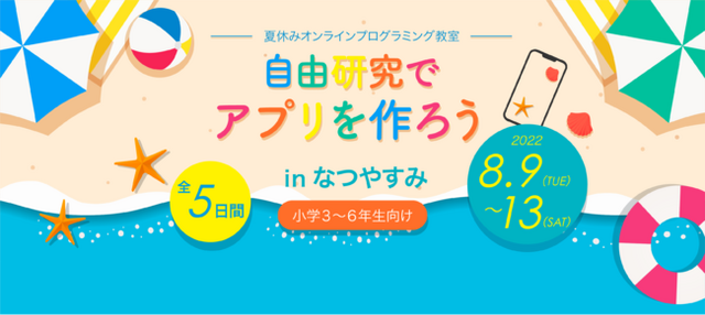 ウェブサイト・スマホアプリの受託開発や、小中学生に向けたアプリ制作教室の運営を行っている株式会社セラピアは、2022年8月9日から8月13日までオンライン上で「自由研究でアプリを作ろうinなつやすみ」を開講します。https://junior.apprel.jp/event-summer