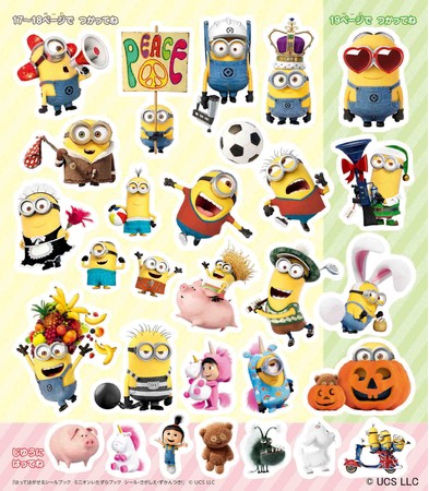 ミニオンの貼ってはがせるシールブックです。キャラクター図鑑、さがしパズル、シールあそびなど、遊べるぺージがもりだくさん! シールを貼りながらミニオンの世界をたっぷり楽しめます。