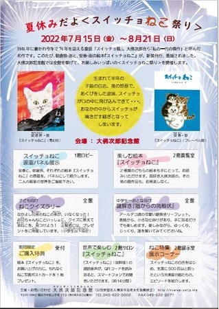 これを記念し、大佛次郎記念館では夏休み期間に、お楽しみいっぱいのイベント<スイッチョねこ祭り>を開催します。