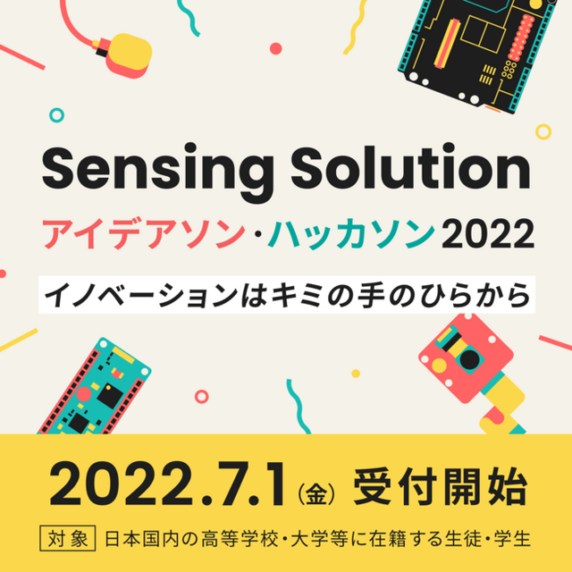 2回目となる2022年は、公益社団法人計測自動制御学会 システムインテグレーション部門とソニーセミコンダクタソリューションズ株式会社の共催で高校生・大学生を対象に「Sensing Solution アイデアソン・ハッカソン2022」を開催します。