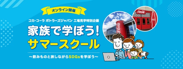 コカ・コーラ ボトラーズジャパン株式会社(本社:東京都港区 代表取締役社長 最高経営責任者:カリン・ドラガン、以下当社)は、工場見学特別企画としてオンライン開催する「家族で学ぼう!サマースクール」の参加者募集を本日7月4日(月)より開始します。開催日は、7月23日(土)、7月24日(日)、8月6日(土)、8月7日(日)の4日間、当社専用ページ(https://www.ccbji.co.jp/event/summerschool/)からお申し込みが可能で、各回先着200名様、小学生以上のお子さまとそのご家族の方が対象となります。