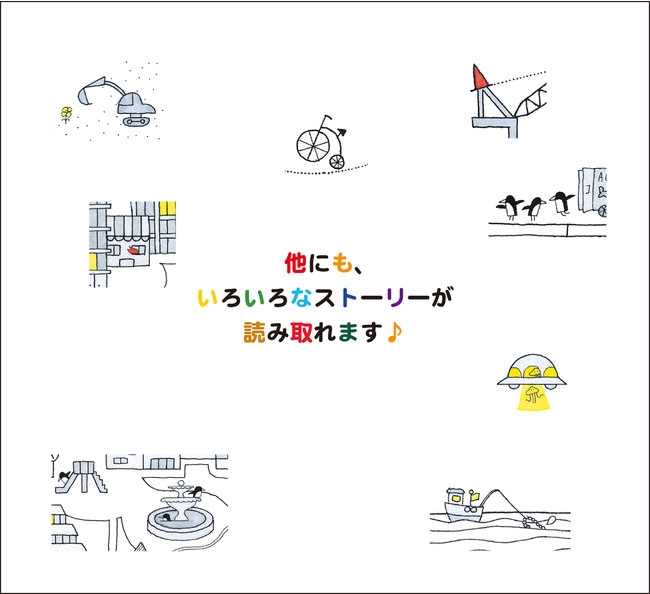 夜の街並みが続いていくだけのお話ではありません。実はよく見ると、迷子になった宇宙人がいたり、ペンギンが逃げ出していたり…。いろいろな物語が潜んでいます。何度も読み返したくなること間違いなし。巻末のミニクイズからストーリーが広がります。