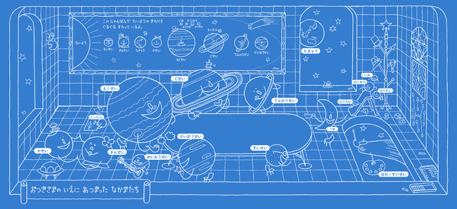 星に興味のあるお子さまにはもちろん、これから興味を持ちそうなお子さまにも興味深いページです。太陽系の惑星や衛星たちが大集合。そこはかとなくキャラクターに星の特徴を入れこんでいます。