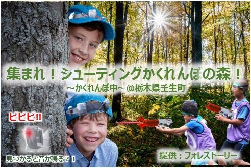 小学生のお子様を対象とした、自然豊かで広大な森林で五感を働かせて、「かくれんぼ」をしてもらい、