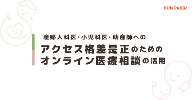 株式会社Kids Public (東京都千代田区 代表:橋本直也)は、産婦人科医・小児科医・助産師へのアクセス格差が存在する地域(特に過疎地域)における現状と課題、及びその対策の一案についてまとめた、『産婦人科医・小児科医・助産師へのアクセス格差是正のためのオンライン医療相談の活用』を公開いたしました。
