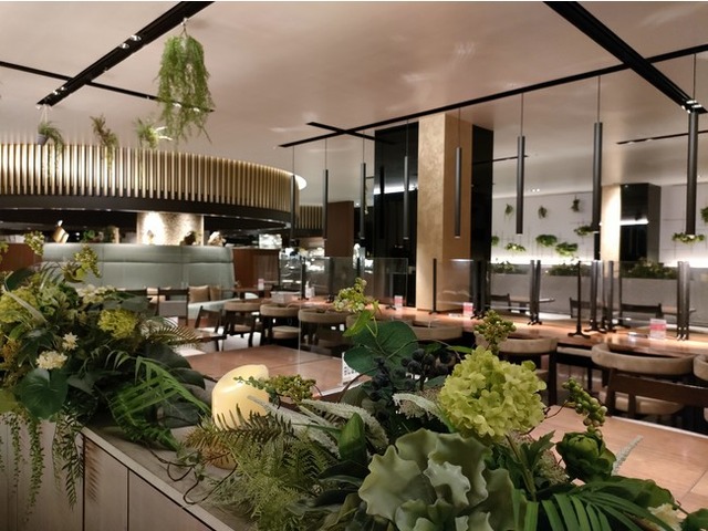 キャンプ歴10年以上のシェフ本田によるアウトドア気分が愉しめるビュッフェ料理を味わうことができます。店内は京都のアーティフィシャルフラワー取り扱い店「サンエイクラフト」とのコラボレーションで、ガーデンテラスをイメージしたグリーン装飾を施し、五感すべてでアウトドア気分を愉しめます。