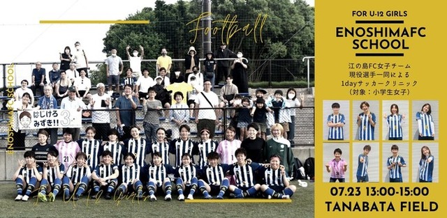 江の島FCは、2022年は男女チームがともに神奈川県社会人サッカーリーグに所属し、男子は2030年のJリーグ昇格を、女子は2023年のなでしこリーグ挑戦を目指して50名の選手が所属しています。2022年より、神奈川県湘南地域の活性化に向け、地域の小学生女子を対象とした『江の島FCスクール』を開催しております。このたび、7月23日(土)に平塚市「SHONAN TANABATA FIELDで、現役選手によるサッカークリニックを開催する運びとなりましたので、お知らせします。
