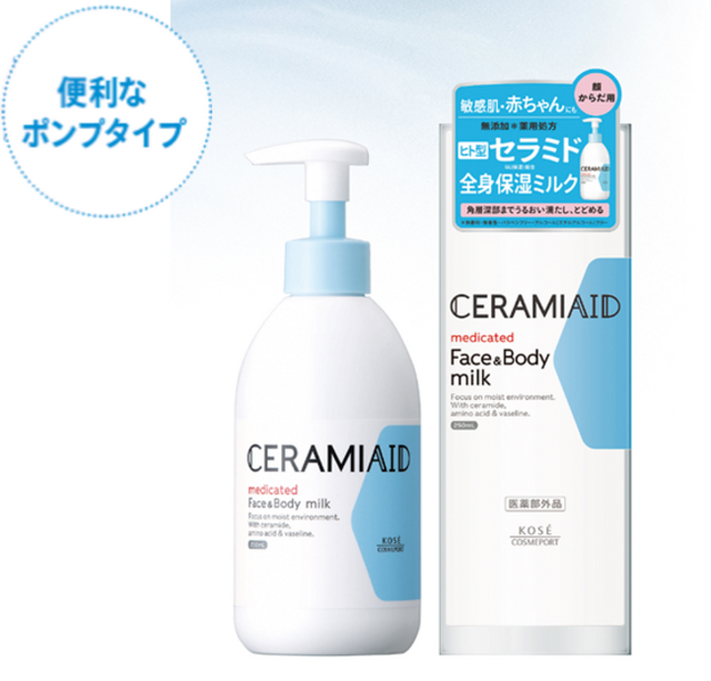 コーセーコスメポート株式会社(本社:東京都中央区、代表取締役社長:小林 孝雄)は、スキンケアブランド『セラミエイド』から、敏感肌・赤ちゃんにも使える無添加※2薬用処方でヒト型セラミド※1GL(保湿)配合の「薬用スキンミルク」(1品目1品種、ノープリントプライス)【医薬部外品】を2022年8月1日より全国の量販店・ドラッグストアを中心に発売します。