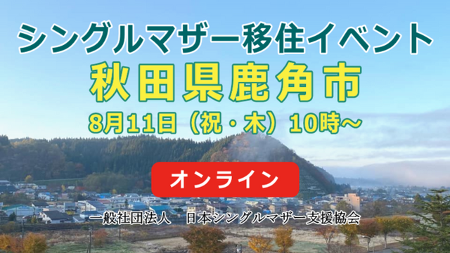 一般社団法人日本シングルマザー支援協会(本社:神奈川県横浜市、代表理事:江成 道子、以下「日本シングルマザー支援協会」)は秋田県鹿角市(鹿角市役所:秋田県鹿角市花輪字荒田4番地1 市長:関厚 )の委託を受けて、シングルマザーのための移住フェアと、移住ツアーを開催いたします。