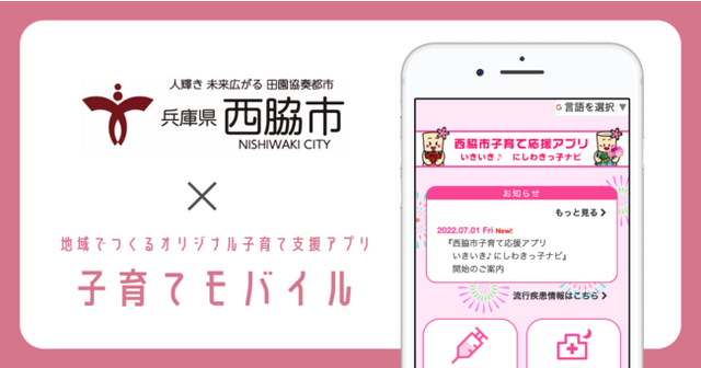 自治体向けサービスを開発する株式会社ミラボ(本社:東京都千代田区、代表取締役:谷川一也、以下「ミラボ」)の子育て支援アプリ「子育てモバイル」が、兵庫県西脇市に導入され、「西脇市子育て応援アプリ いきいき♪にしわきっ子ナビ」として 7月1日より提供を開始しました。