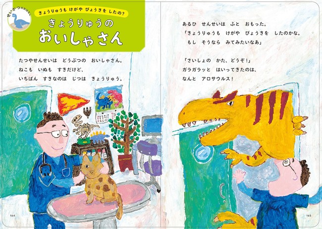 2022年7月11日にはシリーズ第4弾となる『ぐんぐん考える力を育むよみきかせ きょうりゅうのお話20』が発売されました。いちばん足の速い恐竜は何だったのかを描く「いちについて よーい どん!」や、恐竜もけがや病気をしたの?という素朴な疑問に答える「きょうりゅうの おいしゃさん」など、恐竜たちをいきいきと描き、恐竜の生態に迫るお話を20話収載しています。