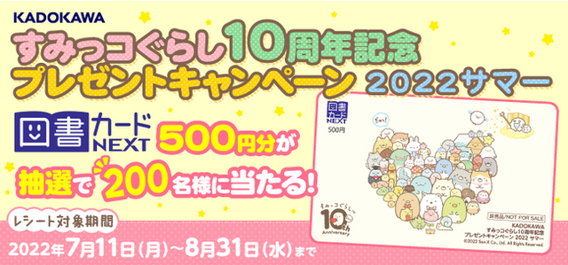 「すみっコぐらし」10周年を記念して『すみっコぐらし10周年記念プレゼントキャンペーン 2022サマー』をKADOKAWAアプリにて開催いたします。