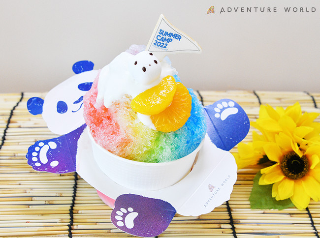 8月14日(日)に誕生日を迎える彩浜をイメージした「レインボー」のシロップに、和歌山県産フルーツやサマーキャンプオリジナルモナカを使用したかき氷で写真映え間違いなしです。