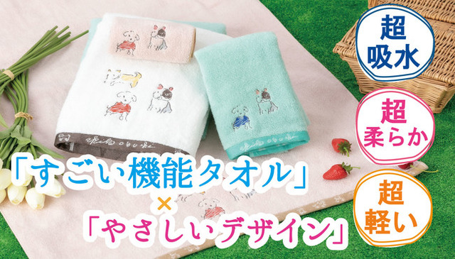 76年間タオルを追求し続けた(株)成願と、やさしさあふれるイラストが特徴のオブチアキコさんとのコラボレーションしたタオルが誕生!素材の良いタオル に 水彩タッチ のデザインがマッチ!