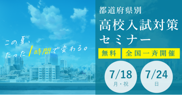 株式会社トライグループ(本社:東京都千代田区、代表取締役:平田 友里恵)は、2022年7月18日(月・祝)と7月24日(日)の2日間、1.11:00~12:00、2.14:00~15:00の各日2回のスケジュールで、中学生と保護者の方を対象に、北海道から沖縄まで全国の教室やオンラインで「都道府県別・高校入試対策セミナー」を開催します。